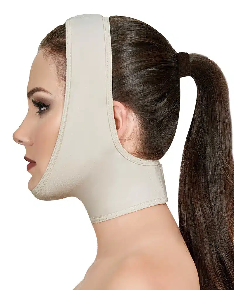 The Ann Michell Chin & Neck strap, crafted in Colombia, is designed for optimal Post-Surgical care following procedures like chin or neck liposuction.