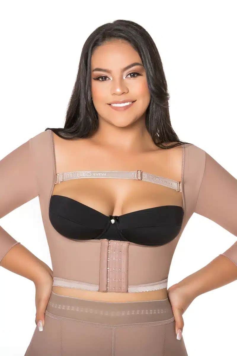 • Post-surgical vest with sleeves for arm lift and upper body recovery